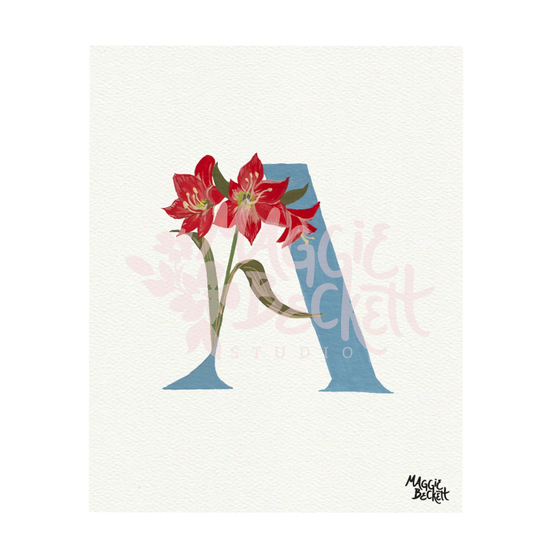 Hand painted floral initials artwork, recreated as a print on Epson Somerset Velvet certified archival paper. Print only- frame is not included.