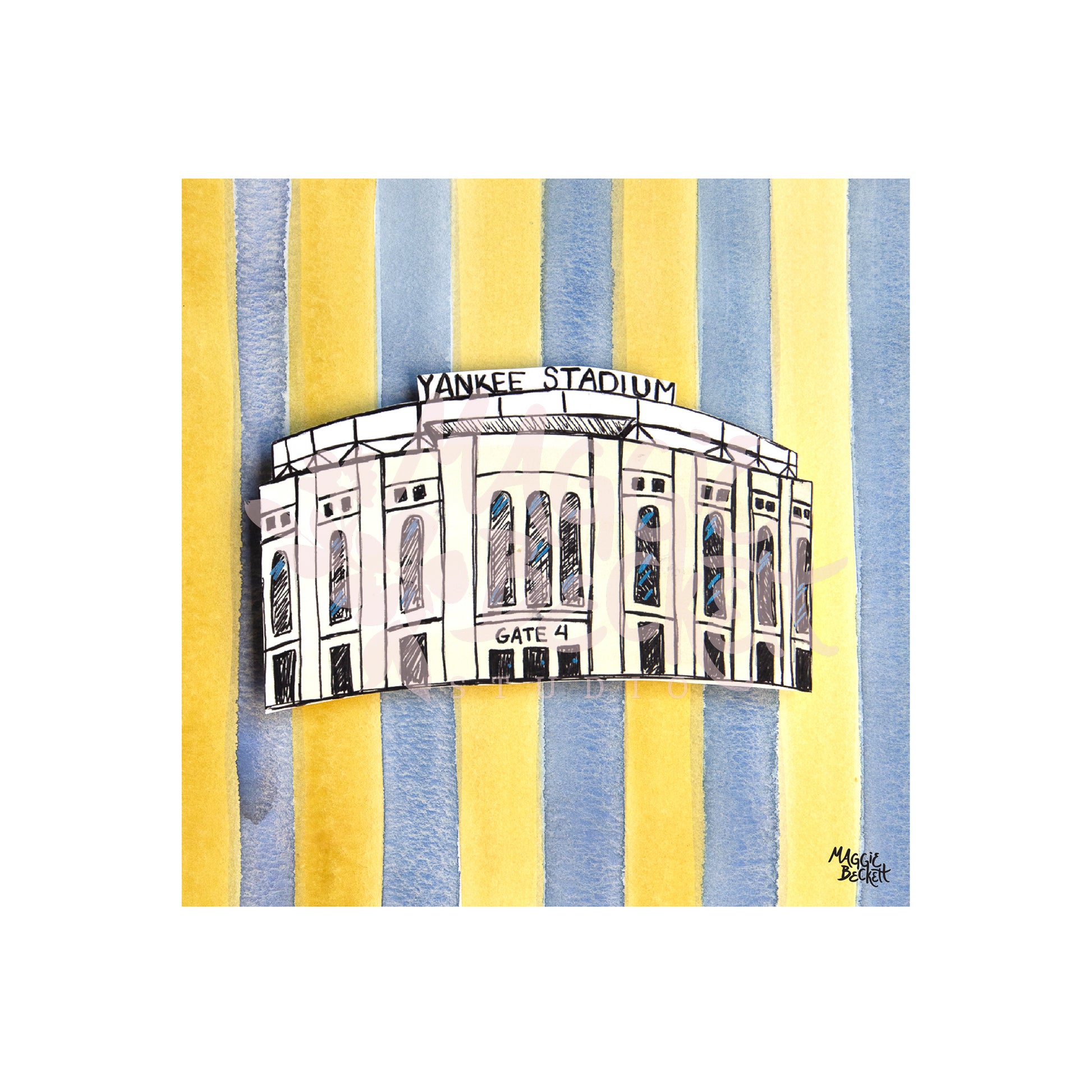 Hand painted NYC Yankee Stadium artwork, recreated as a print on Epson Somerset Velvet certified archival paper. Print only- frame is not included.
