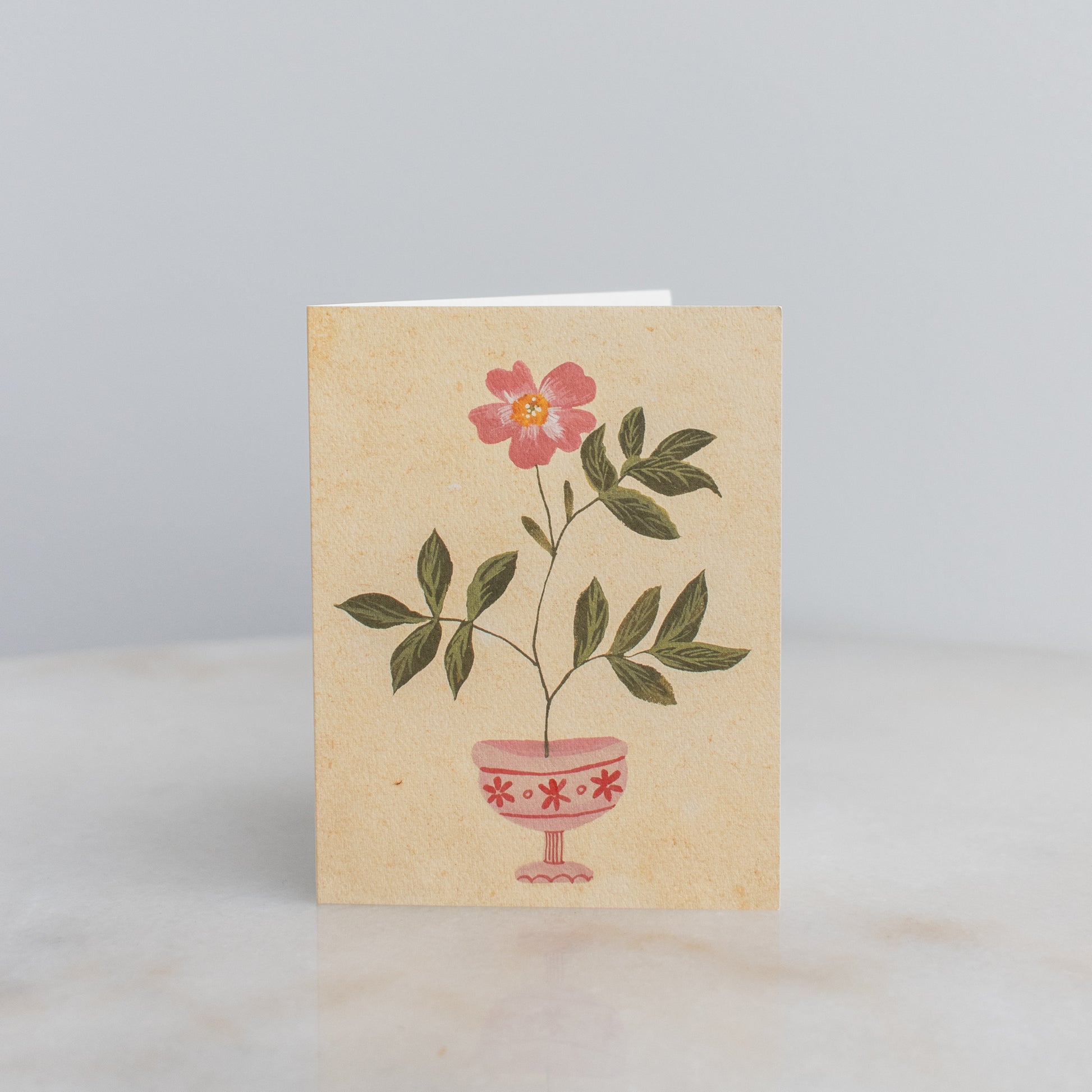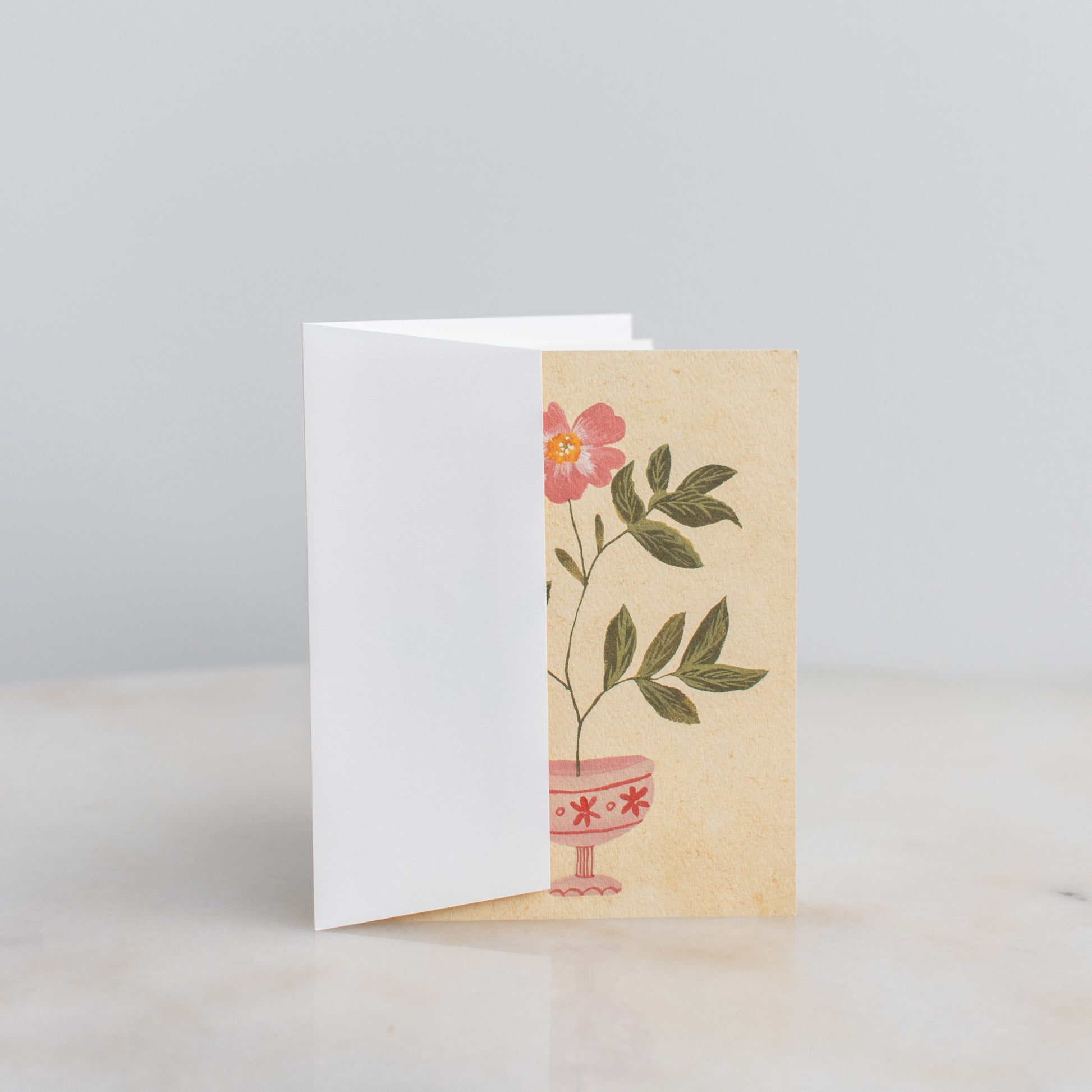 Delicate Pink Floral Vase artwork printed on 110lb textured warm white paper with a high quality, watercolor paper feel.