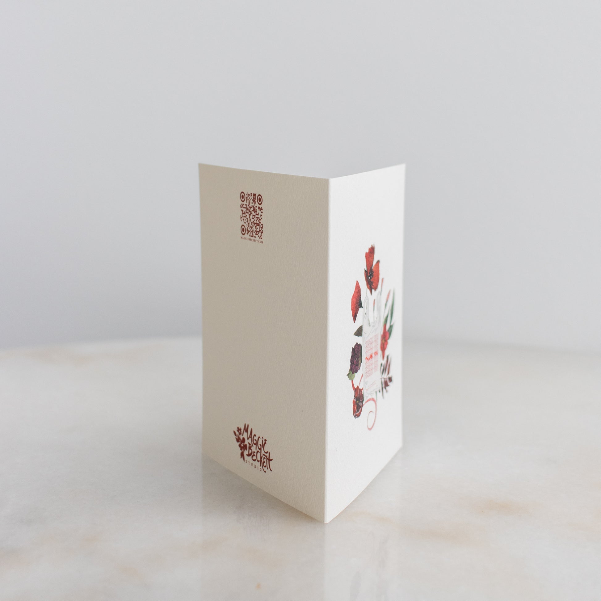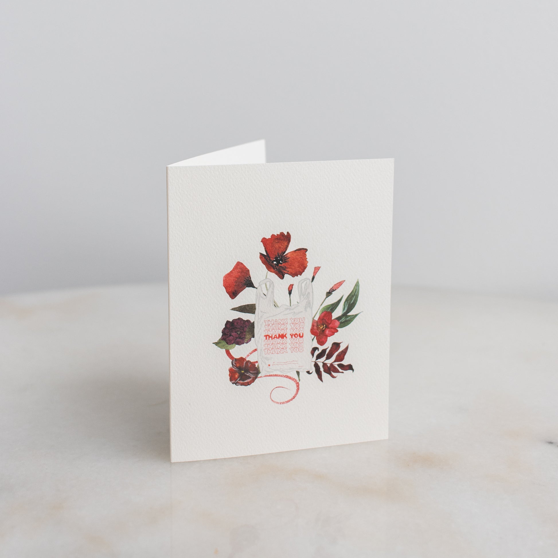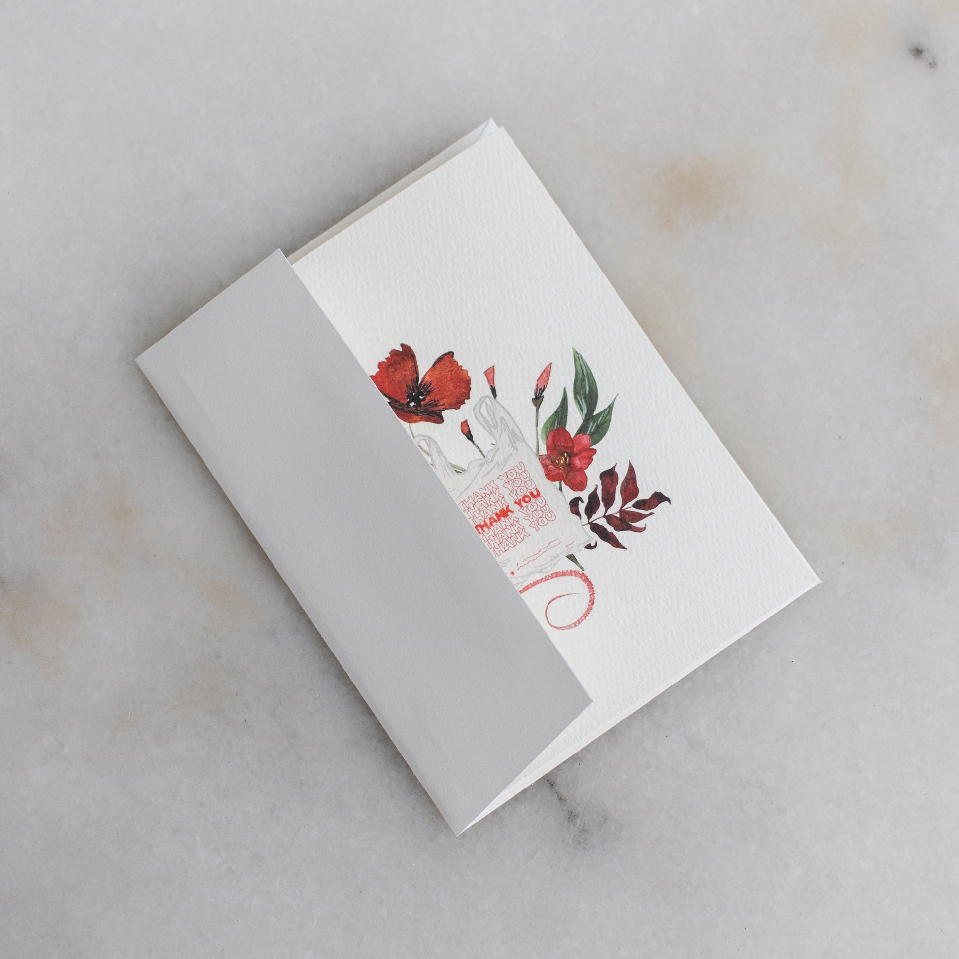 Floral thank you bag artwork printed on 110lb textured warm white paper with a high quality, watercolor paper feel.